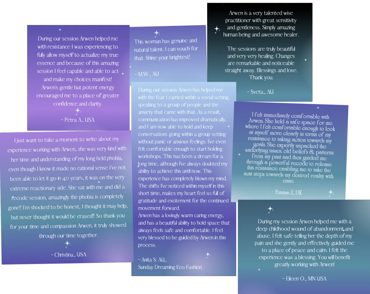 Arwen Dyer facilitates transformations and teaches Superconcious and Intuitive processes using Sacred Creatrix Codes. Her Divinely held methodology incorporates magnetic mind techniques, superconscious recode, ancient wisdom, alchemy, neuroscience, quantum physics, and the latest manifestation methods.